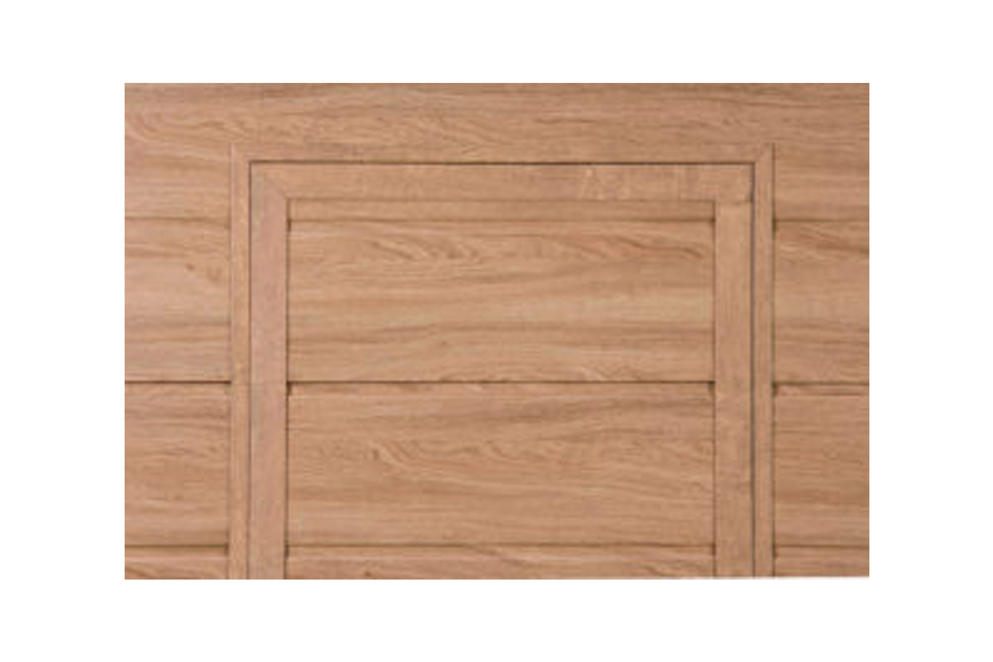 Estilo madeira, com um efeito sensacional de tonalidades mais claras ou mais escuras, sobre a superfície lisa. A característica mais distintiva é a grande ranhura central que divide em duas aduelas cada painel, conferindo um estilo rústico mas elegante.