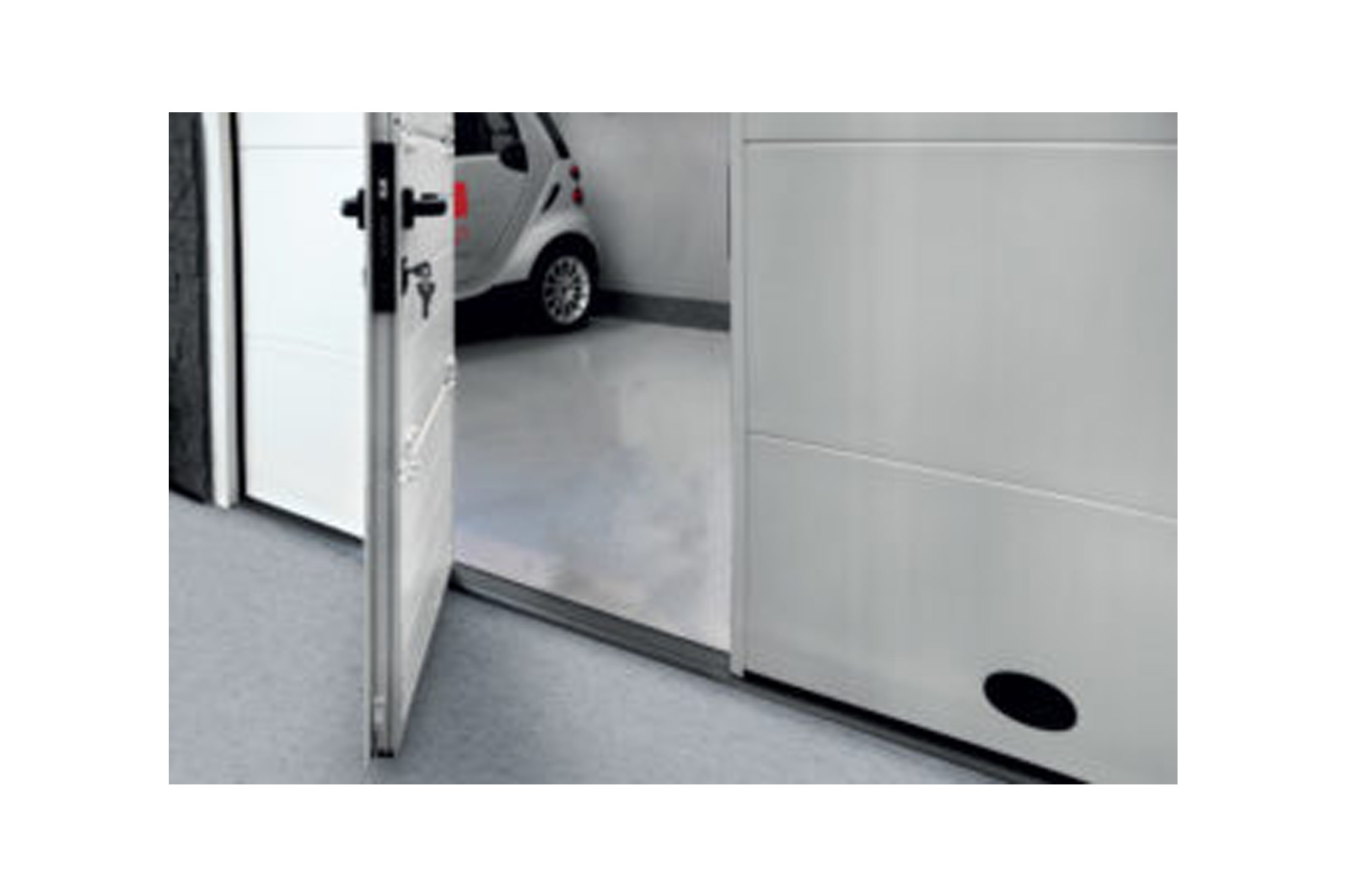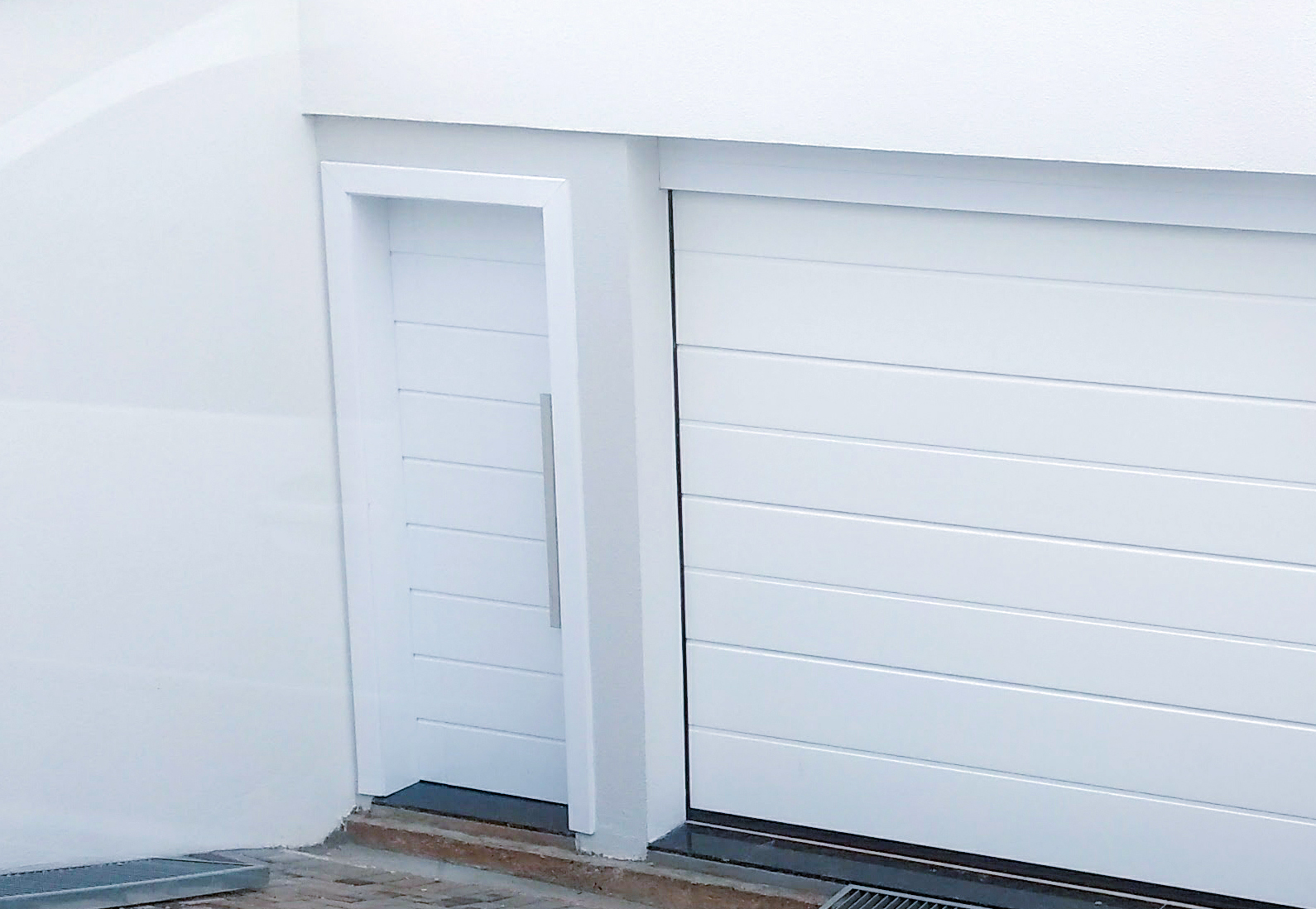 Portas realizadas com os mesmos painéis do portão de garagem seccionado, disponíveis em todos os modelos
